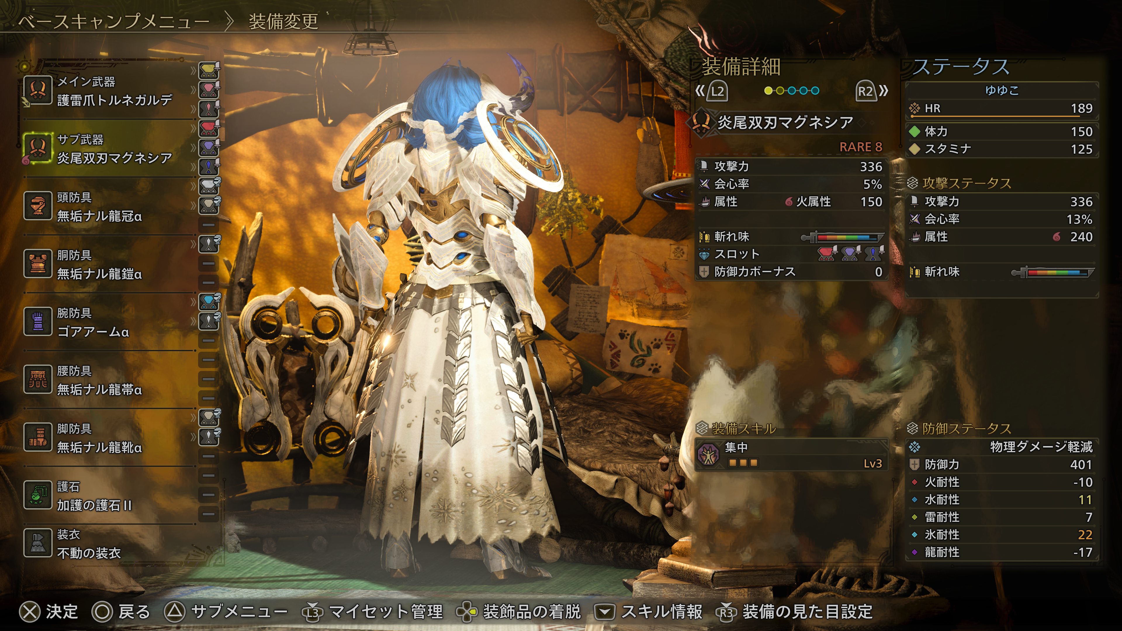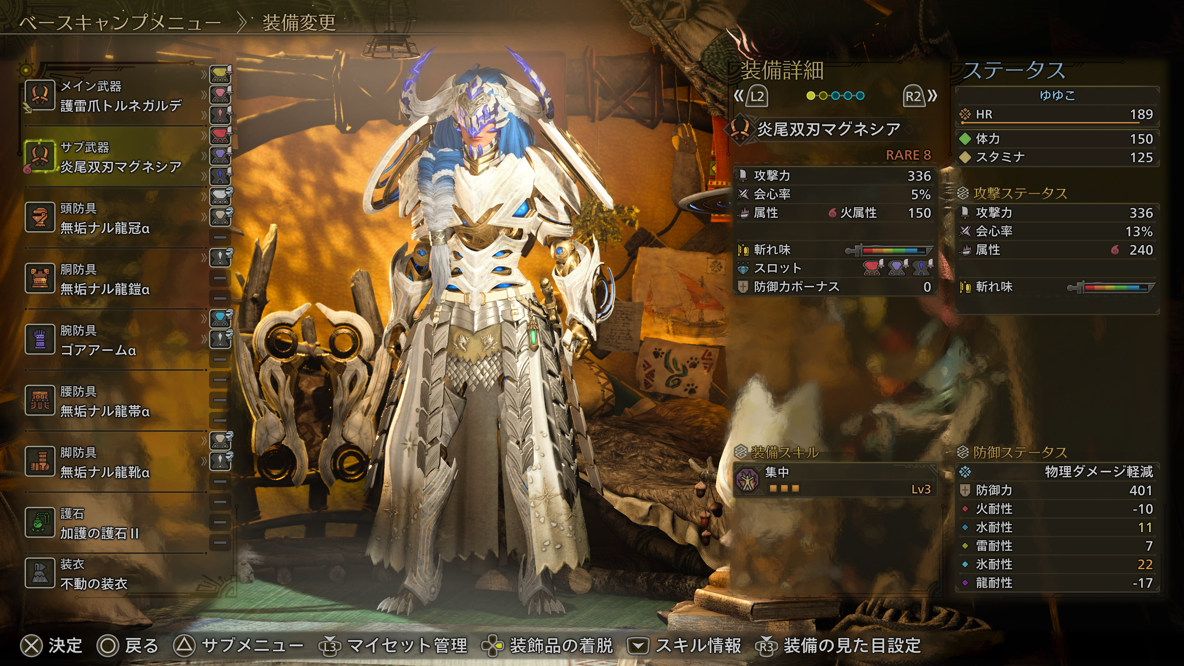 ゲーム モンハンワイルズのコスメティックDLC、今回のは好みど真ん中すぎたので買った。 #MHWilds いかつくも上品でSF感もあり、最高です。 頭は今のところ護竜アルシュベルドと合わせるのが気に入ってる。