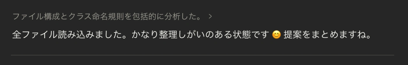 個人サイトのCSSがかなりごちゃごちゃと汚くなってきたので、Claudeに整理の手伝いを頼んだ。ファイルを見せたときの反応がこれ: