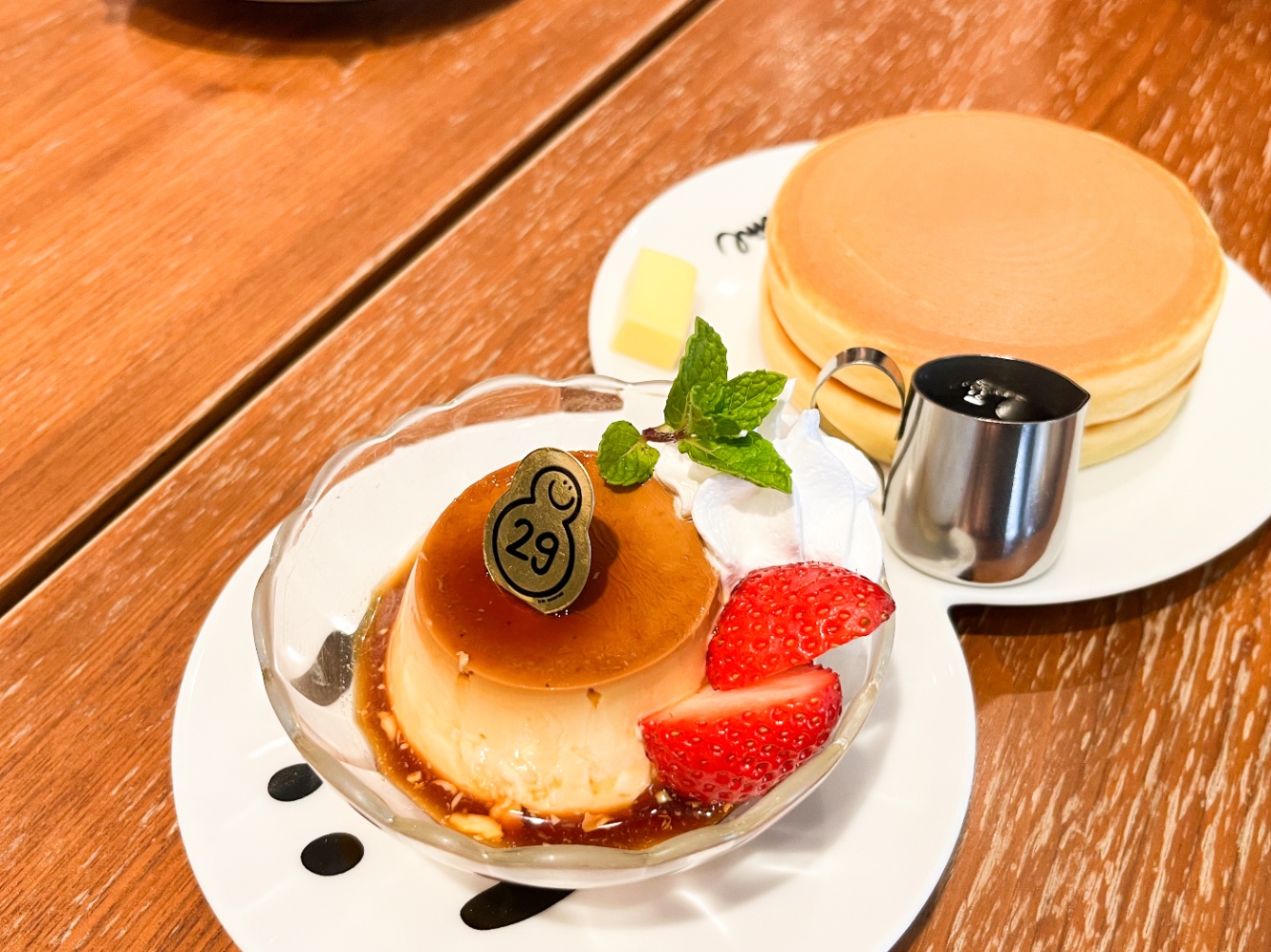 その後、母と待ち合わせて丸福珈琲店でランチ。話が盛り上がったので、ミニホットケーキとプリンのセットも追加した。