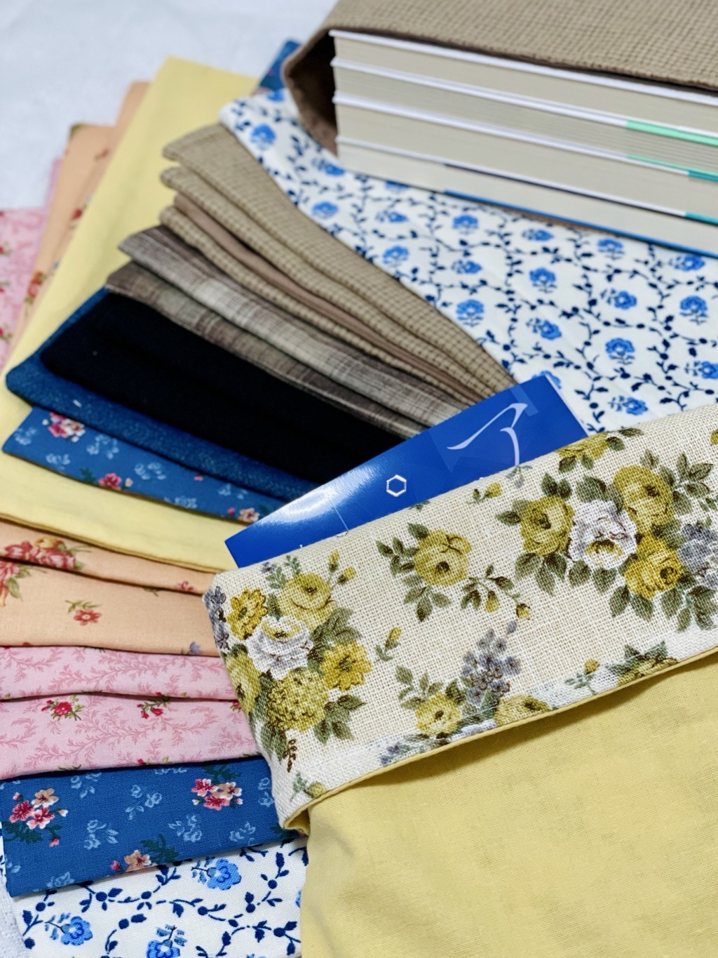シンプルながら丁寧なつくりで軽くコンパクト、薄手の文庫本から四六判数冊まで柔軟に受け入れます。表布と裏布のマッチングもいろいろ! 当日お求めの方にはお好みの組み合わせを選んでもらいました。